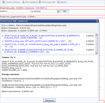 Рассмотрим другой пример: запросы на странице блогов. Количество запросов равно четырем. Но они потребляют меньше 4% от времени компоненты, которое составляет 0.0228 сек. Важно, что количество запросов не играет решающей роли, важнее время выполнения запросов. На практике использование этого инструментария позволяет: